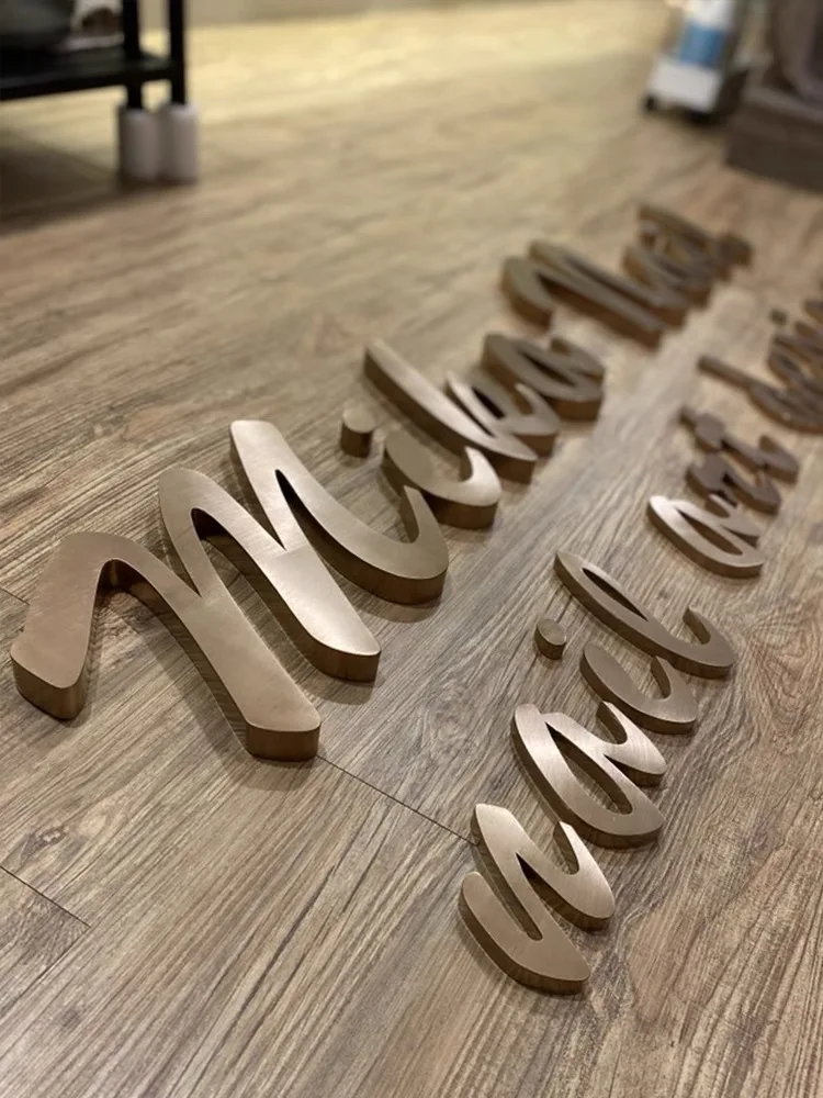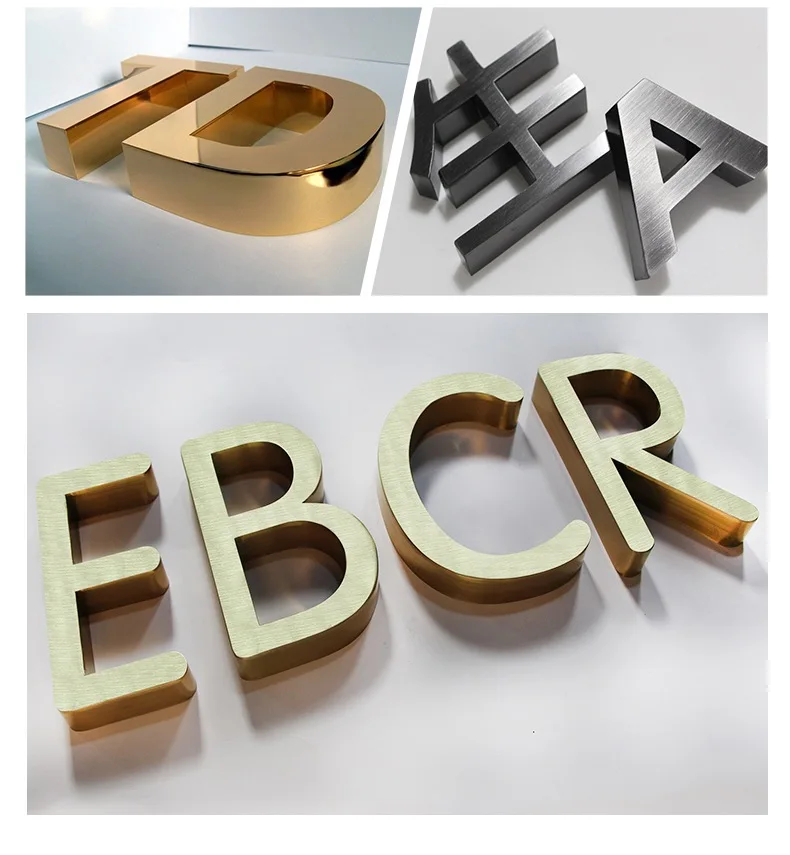 3D Gold Metal Logo Metal Channel Letters For Outdoor Signs Gold Metal Sign Letters