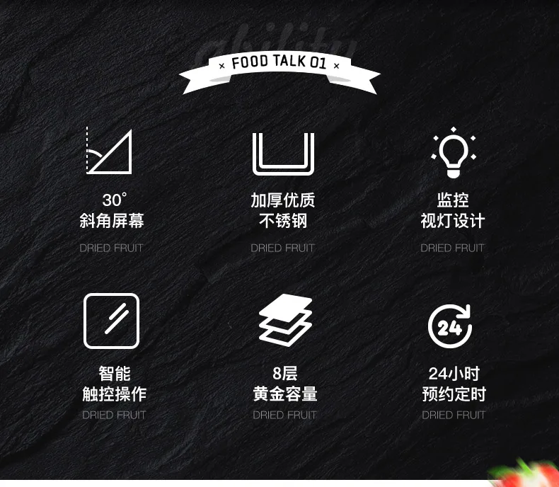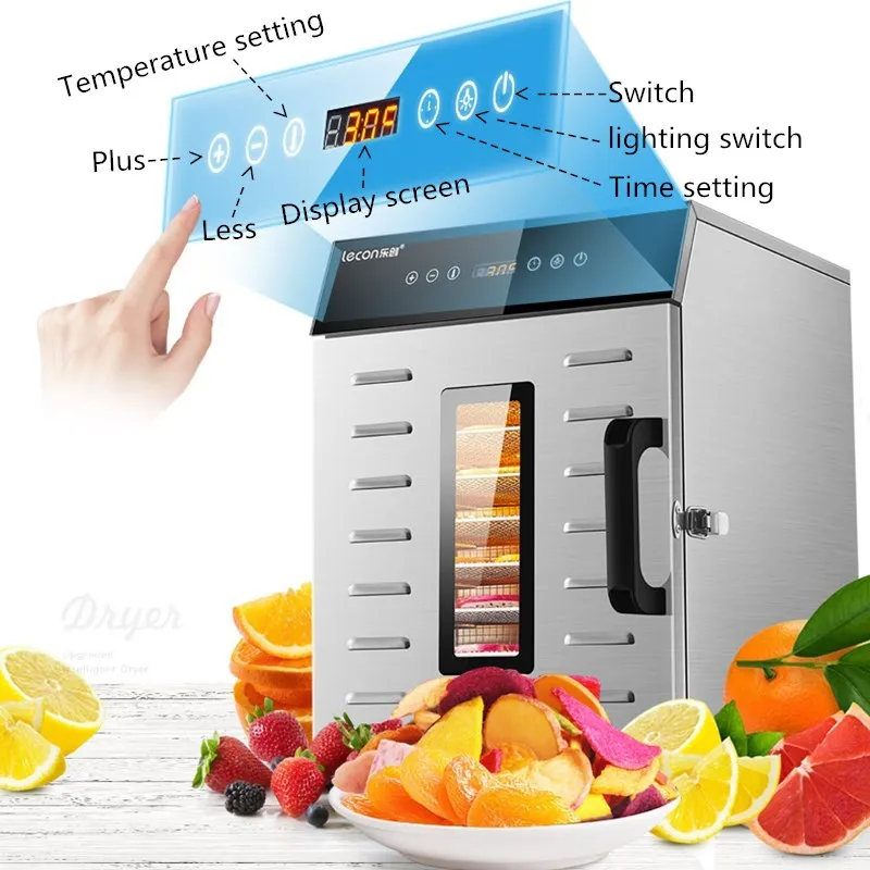 Food Dehydration Dryer Dried Fruit Machine for Home and Commercial 8-layer Smart Touch Capacity Visual Door Lighted