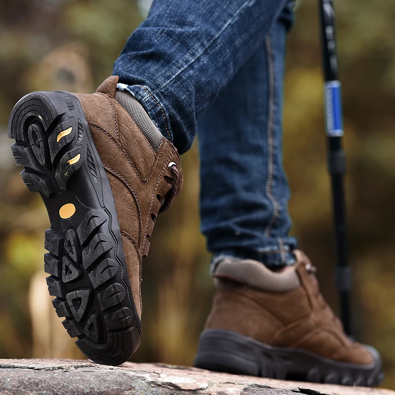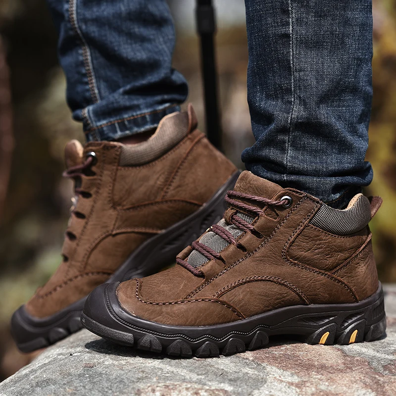 High Quality Outdoor Men's Shoes Genuine Leather Hiking Shoes Men Handmade Non-slip Warm Winter Boots for Men Winter Snow Boots