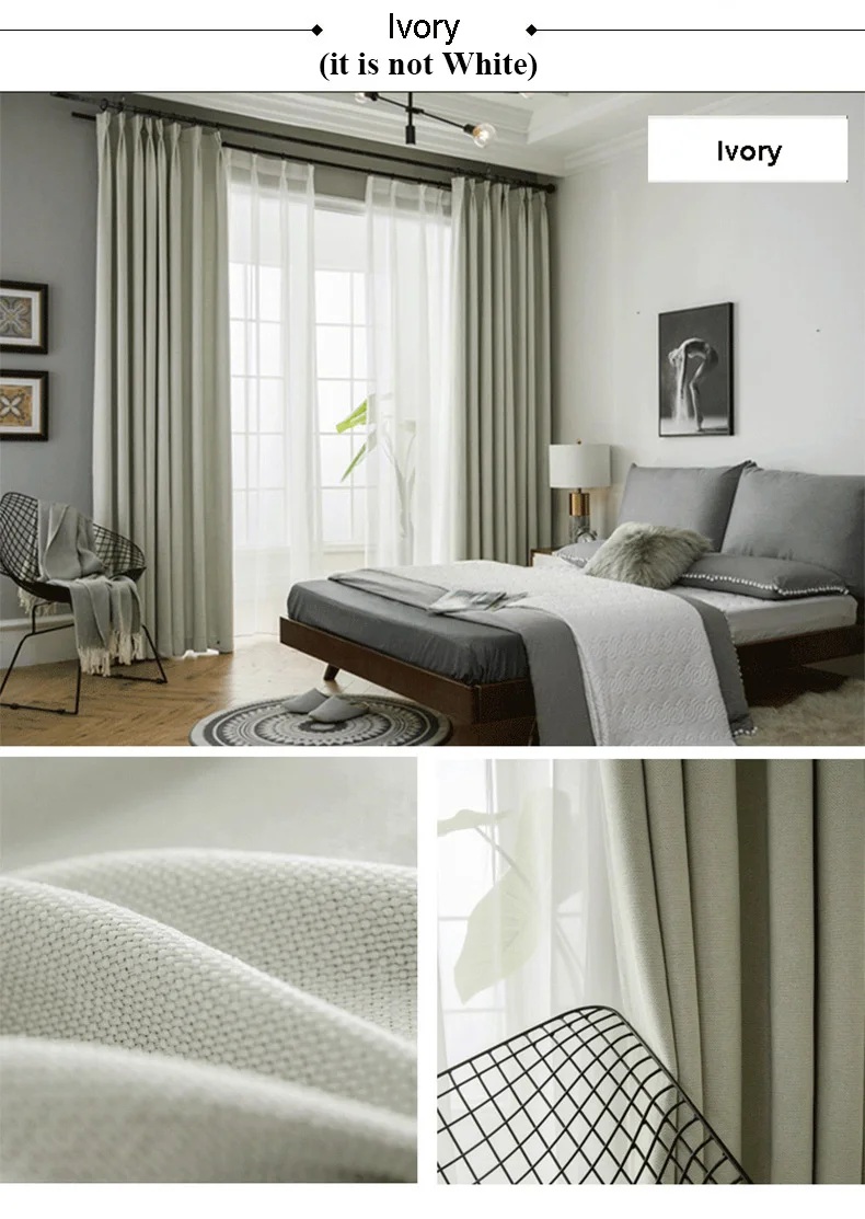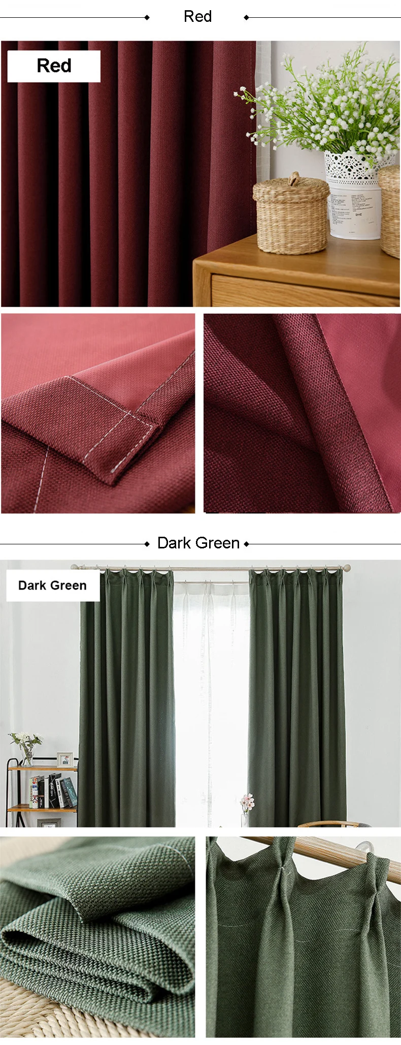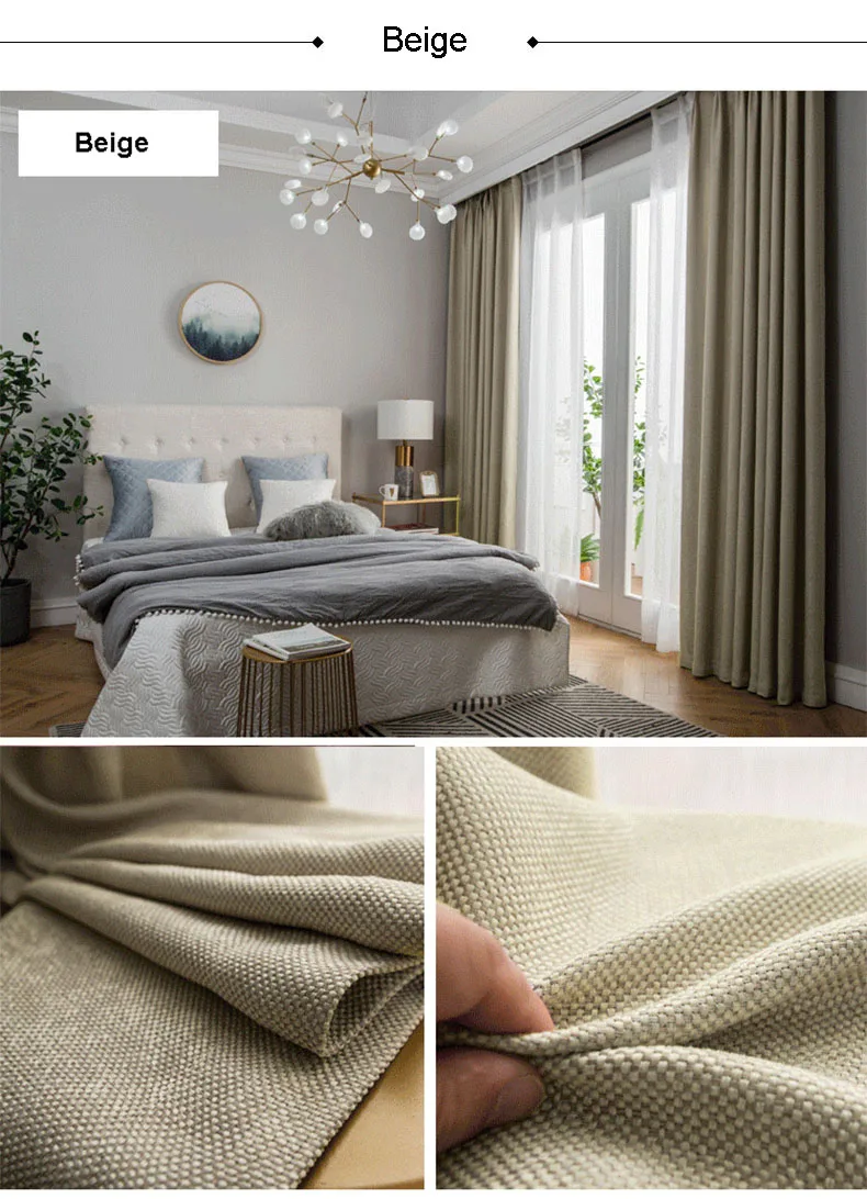 Modern Style Solid Color Cotton and Linen Thermal Insulated Curtains Blackout Curtain Drape For Living Room Brdroom Window