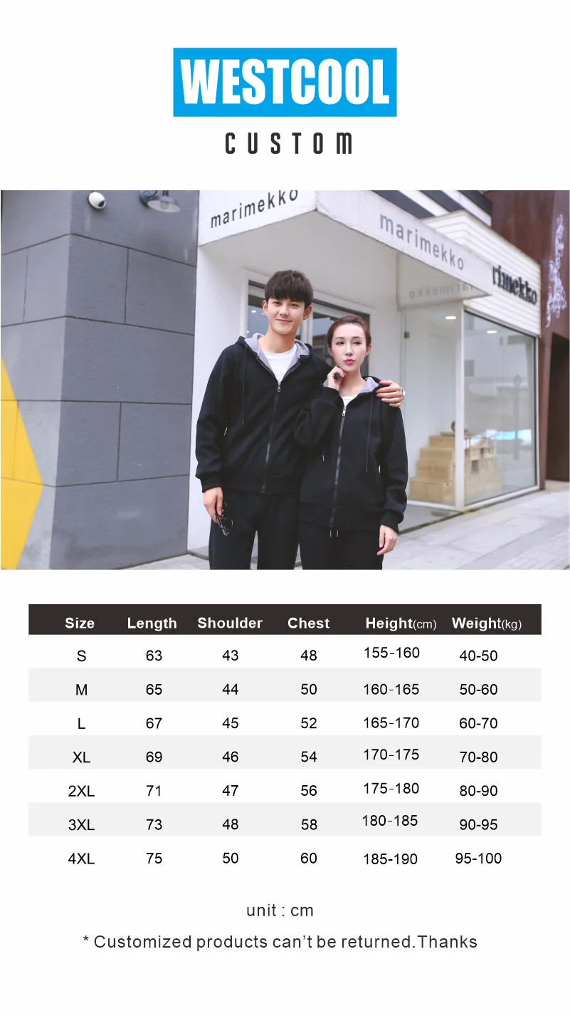New Trend Hoodie Custom Sweet Couple Cloth Print Exclusive Logo Fashion Solid Color Plus Velvet Warm Jacket WESTCOOL 2021