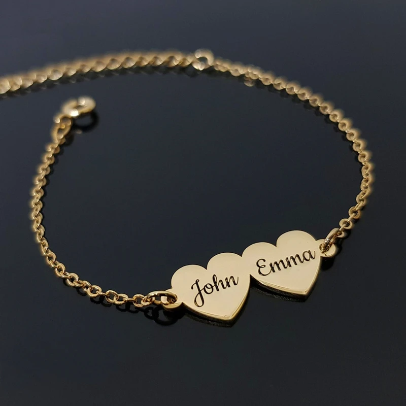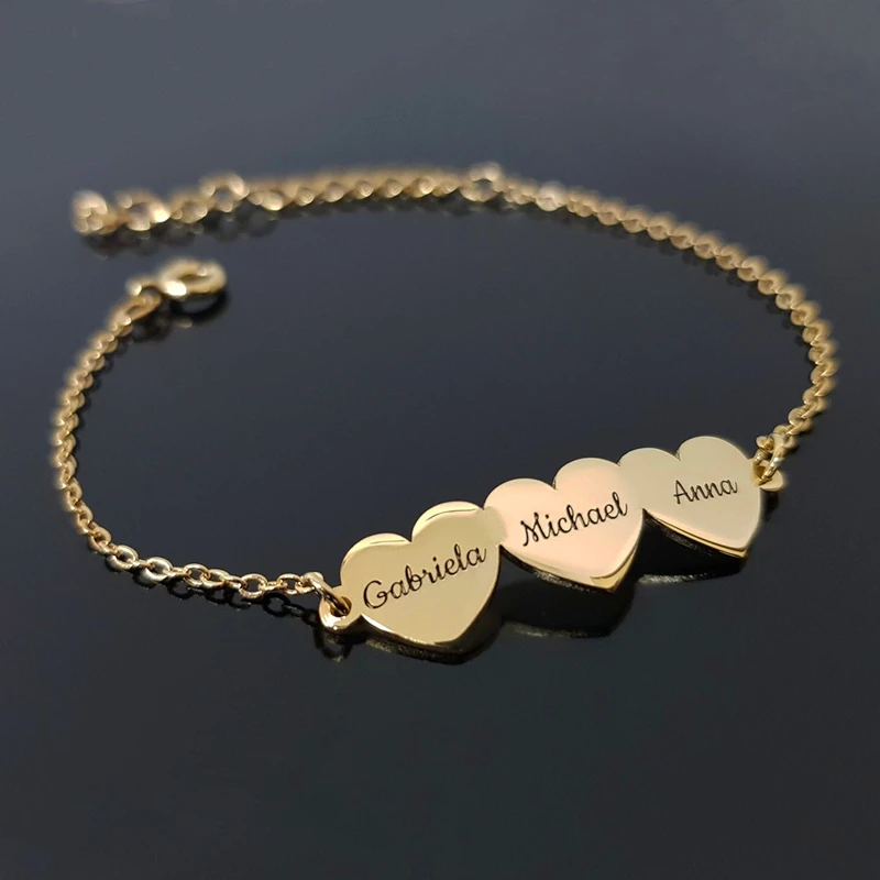 Personalized Family Members Name Bracelet Anniversary Jewelry Stainless Steel Cute Heart Engraving Nameplate Charm Bracelet