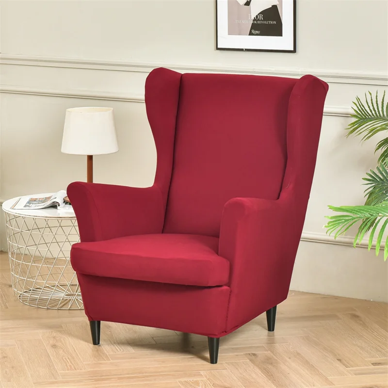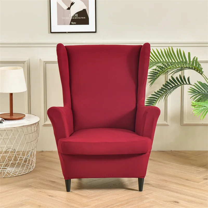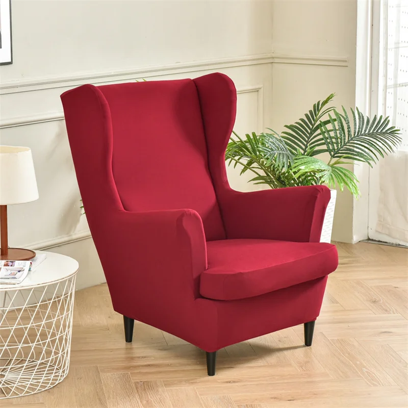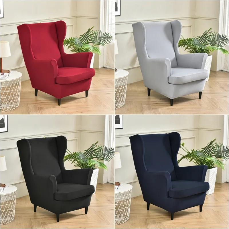 Solid Color Wing Chair Cover Stretch Polyester Armchair Covers Nordic Removable Relax Sofa Slipcovers With Seat Cushion Covers quantity