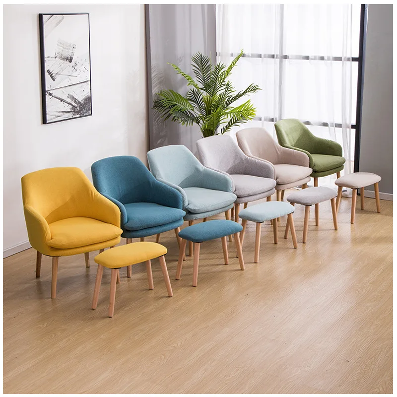 Solid Wood Cloth Single Sofa Chair Nordic Armchair Balcony Leisure Chair for Living Room Bedroom Lazy Modern Minimalist Creative quantity