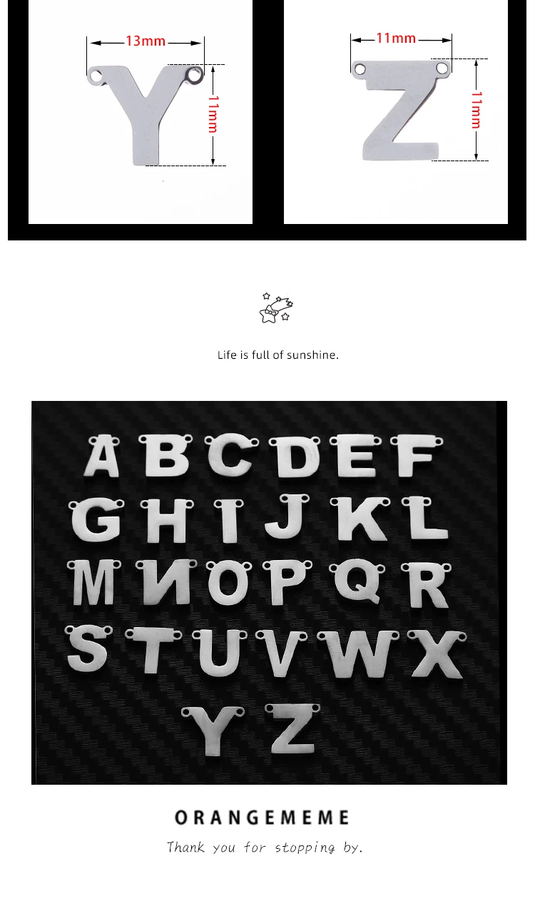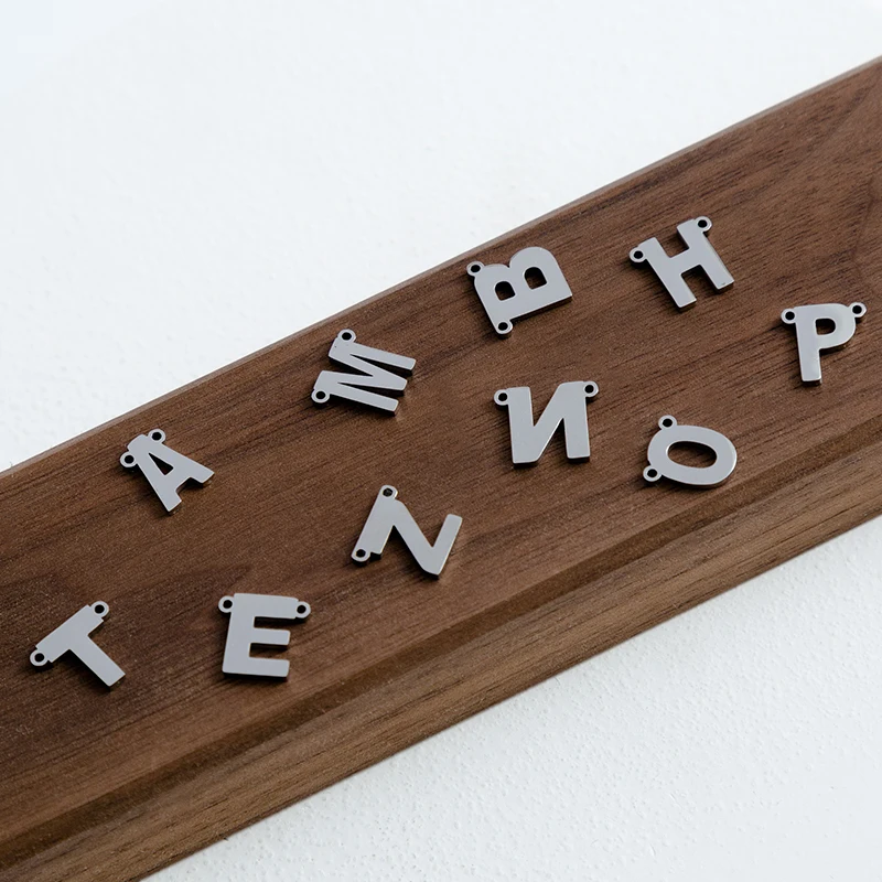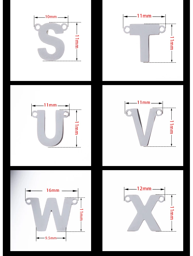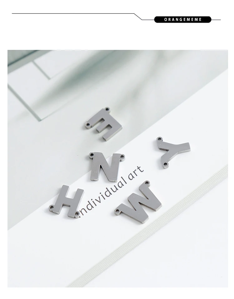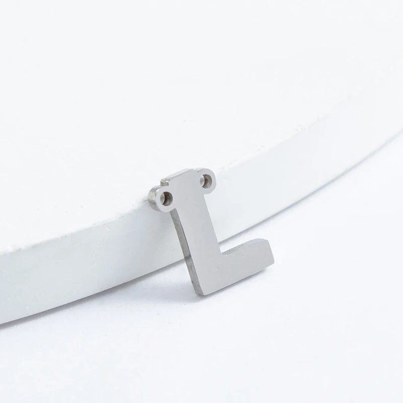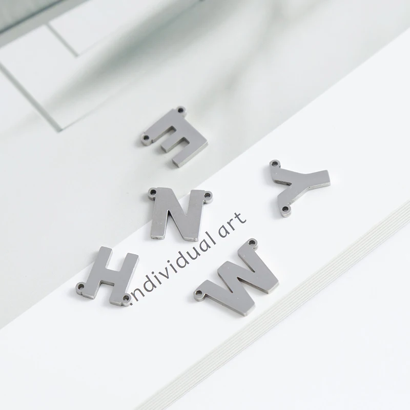 Stainless Steel Sliver 26 Letters Pendants For Women Necklace Earring Jewelry Accessories Double-aperture