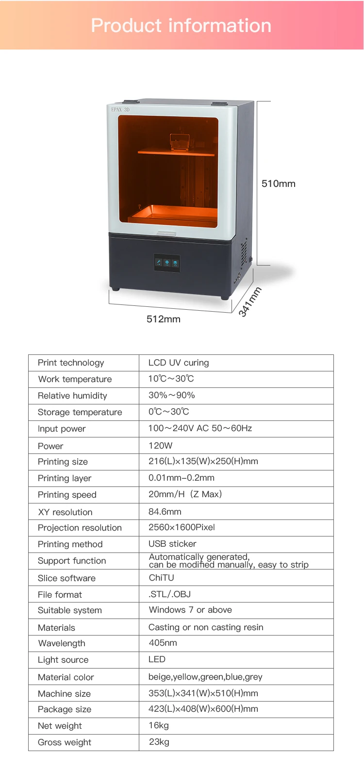 Mono 3D Printer UV Resin Printers with 6” 2K Monochrome LCD Screen & Fast Printing Speed 130x80x165 mm