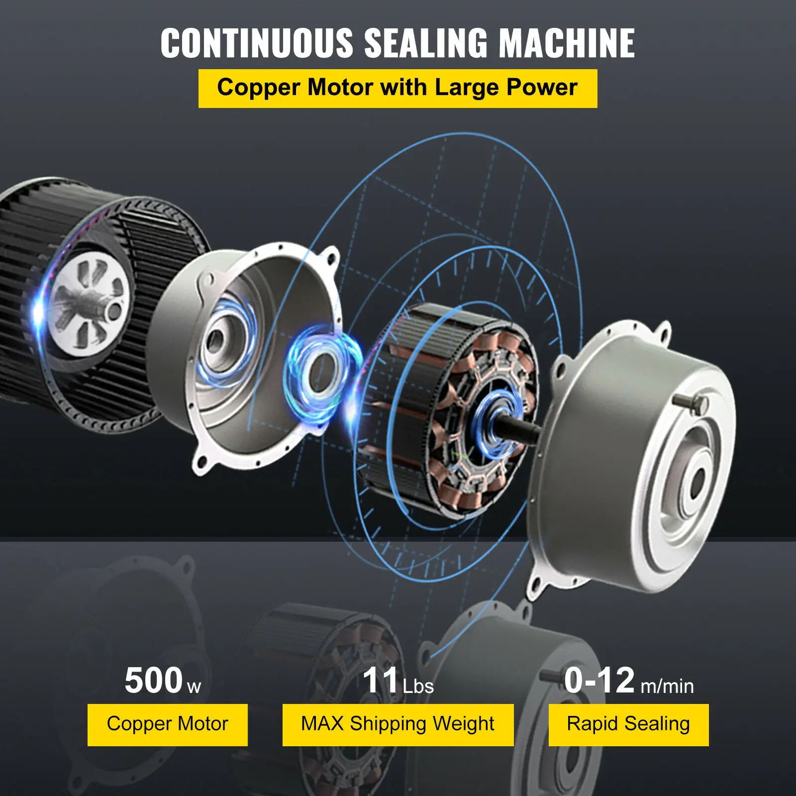 Adopting a complete copper motor that is durable and immune to corrosion, this band sealer machine features low noise and high efficiency. And its performance is stable and reliable.